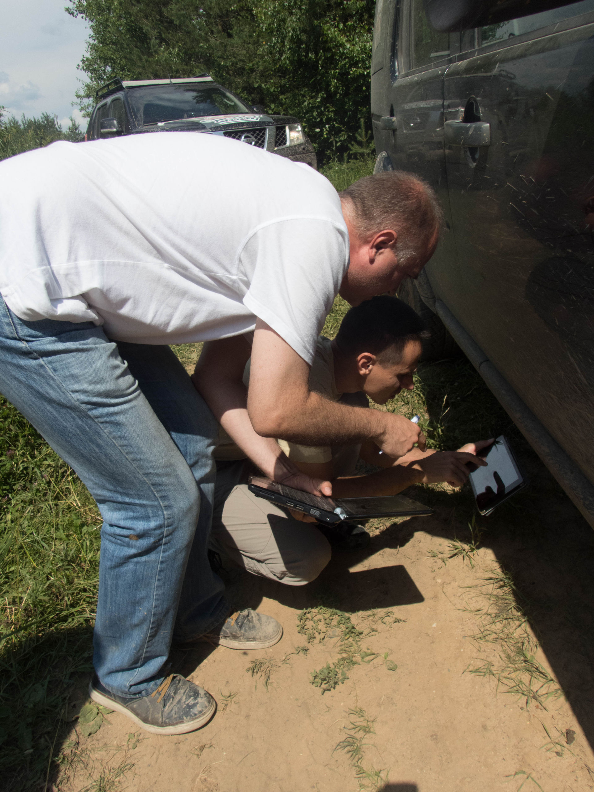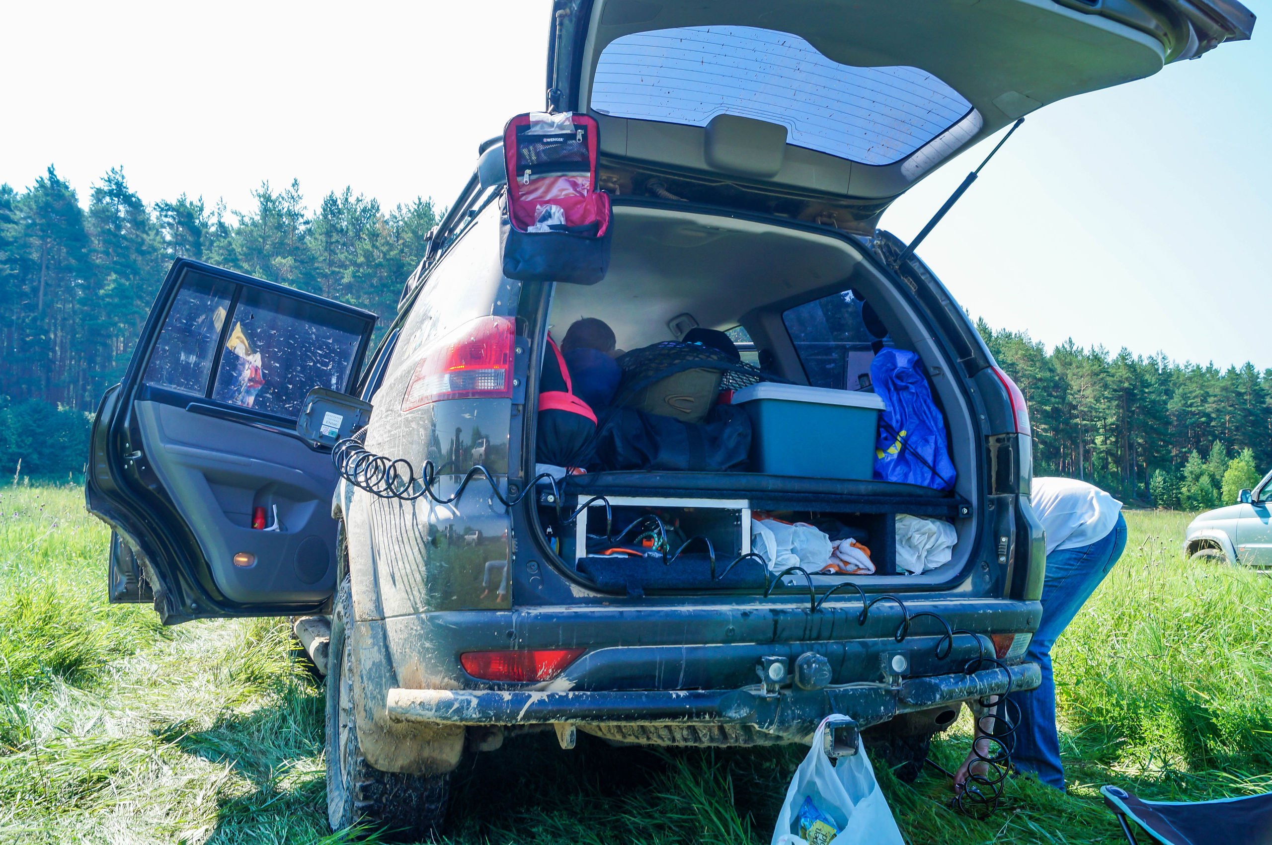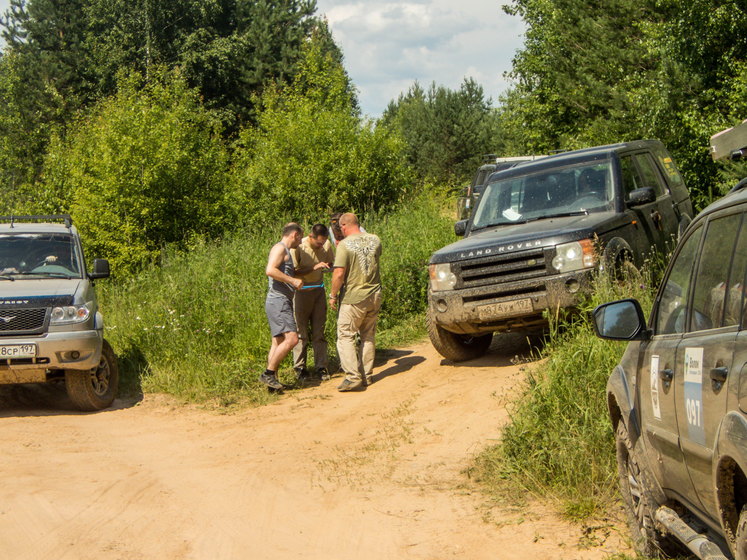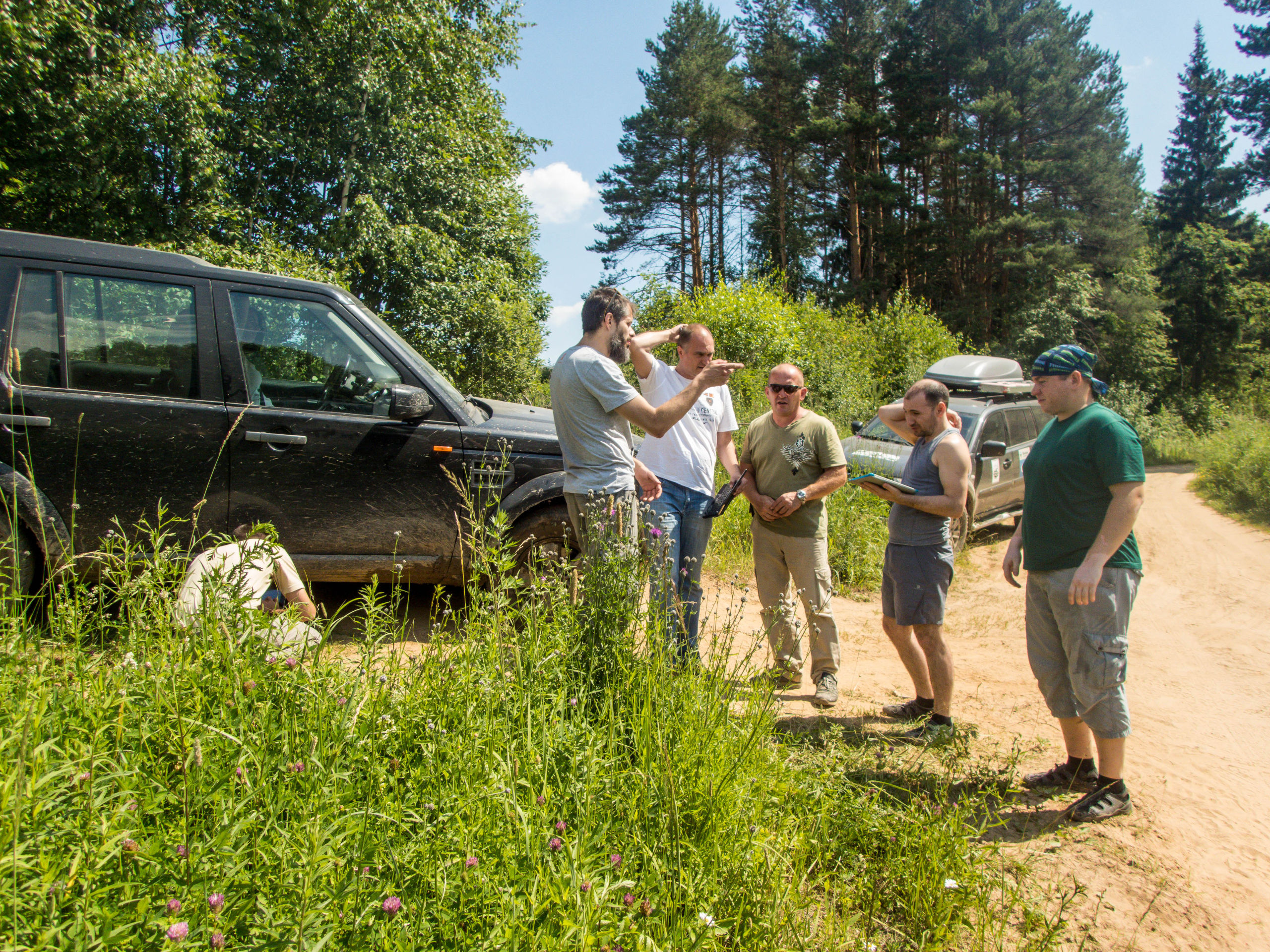 После ручья немного расслабились на грунтовке и чуть не сделали «уши» на ровном месте. Хорошо облокотились на деревья багажником на крыше. А дальше аккуратненько вернулись на дорогу.