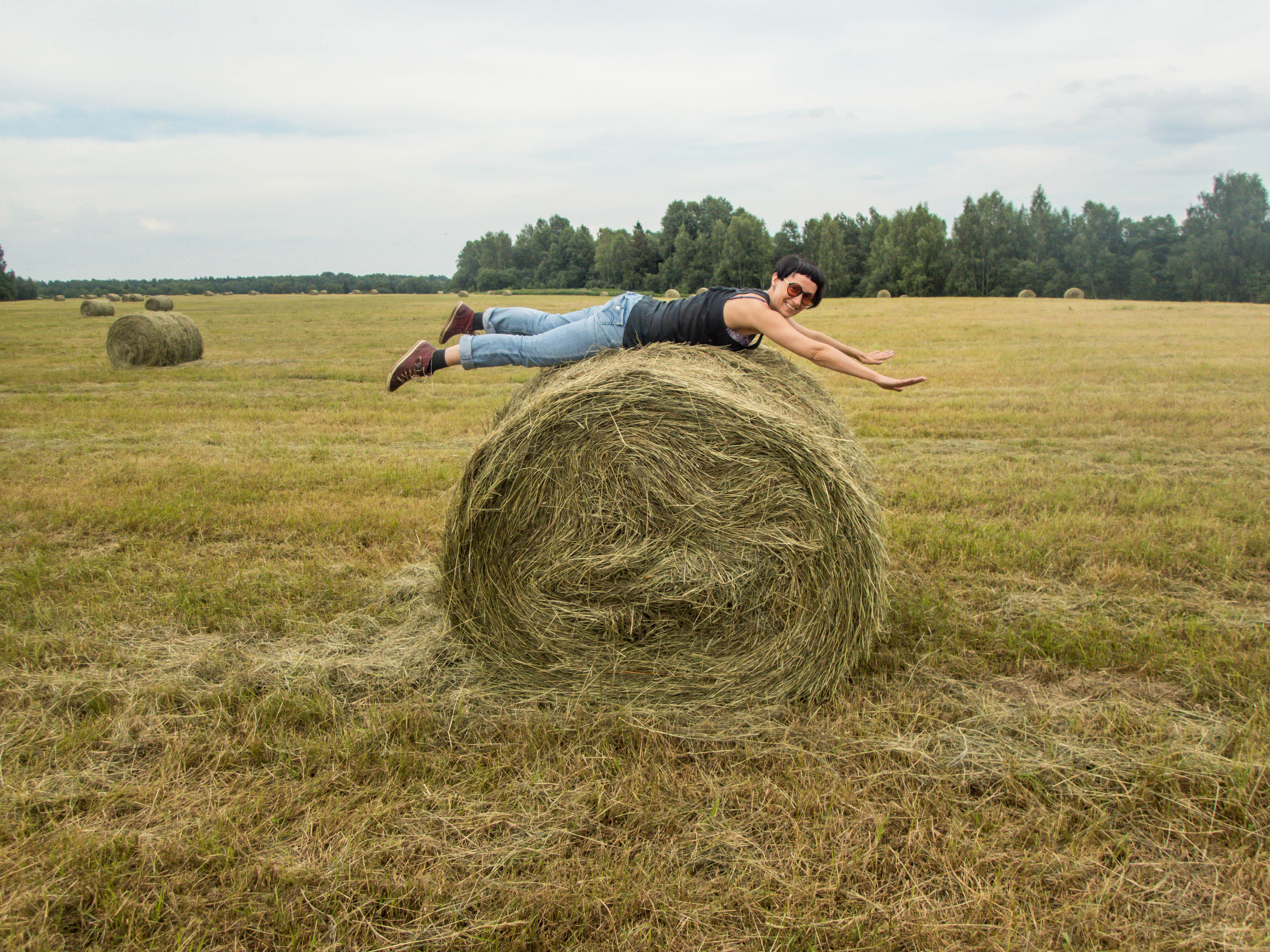 Летела и приземлилась на стог.