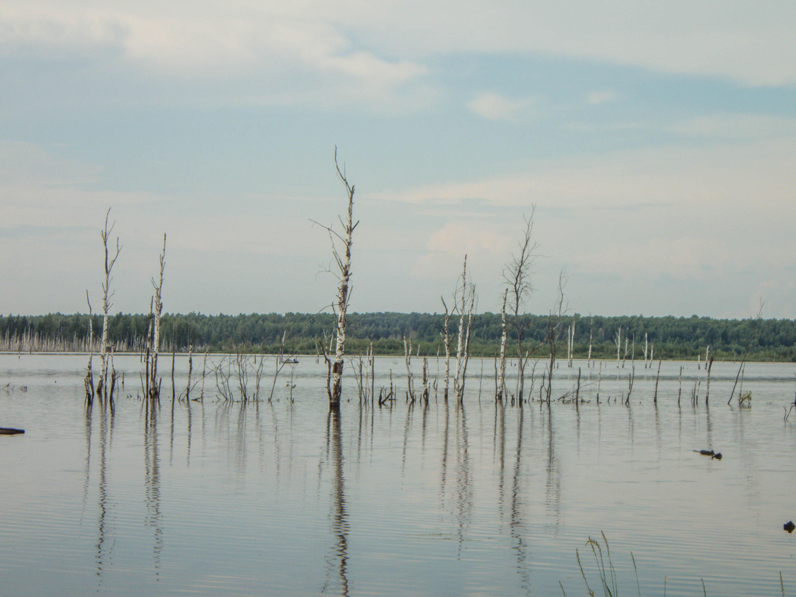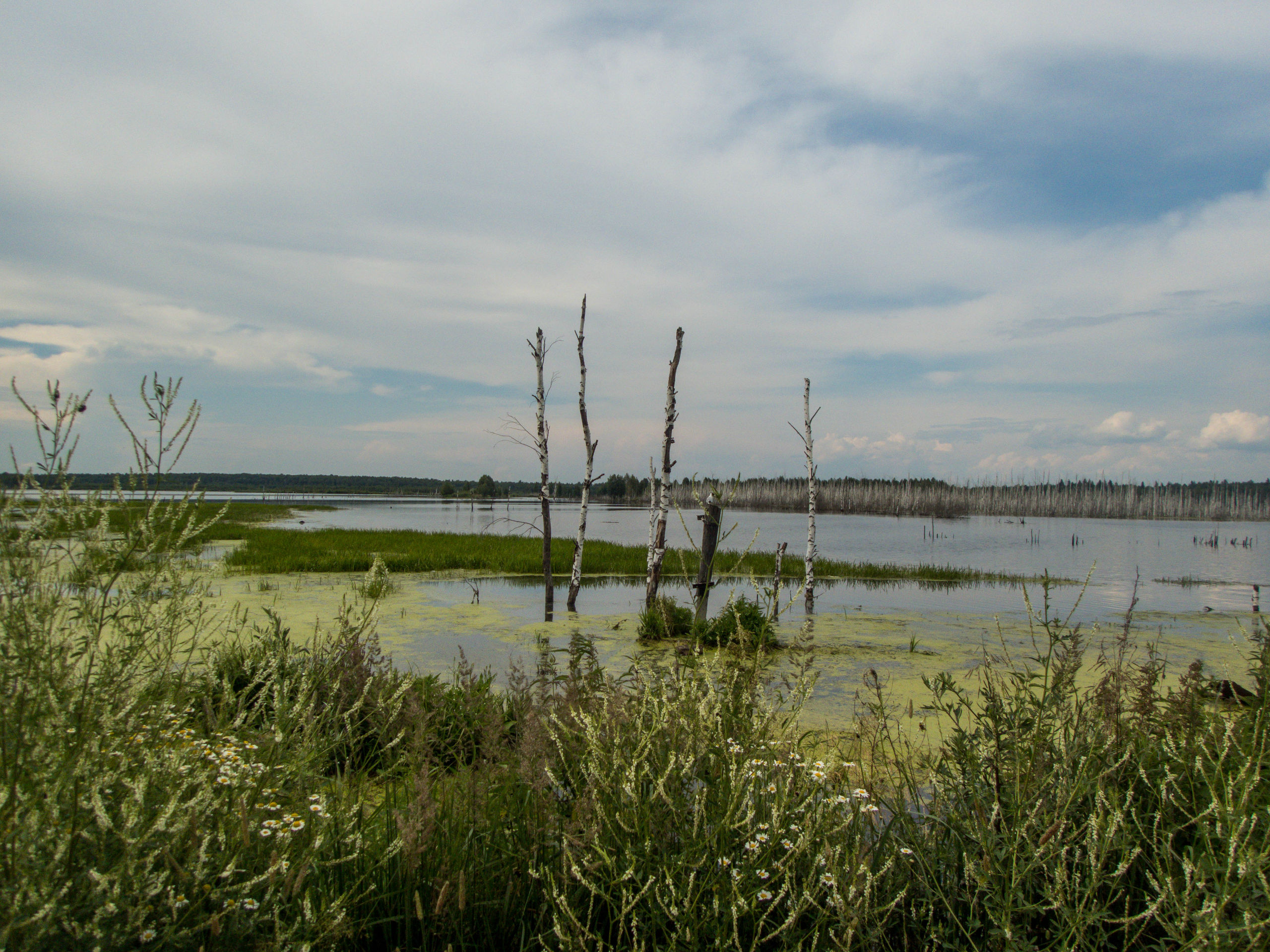 Кладбище торфомашин рядом с Кубринском. Его уже много лет как нет, и даже все что торчит из воды давно спилили на металлолом зимой, а все называют место кладбищем. Красивое место, не загадили бы его только мусором рыбаки так сильно, но видимо им приятно ловить рыбу среди говна. Погадил — пометил место.