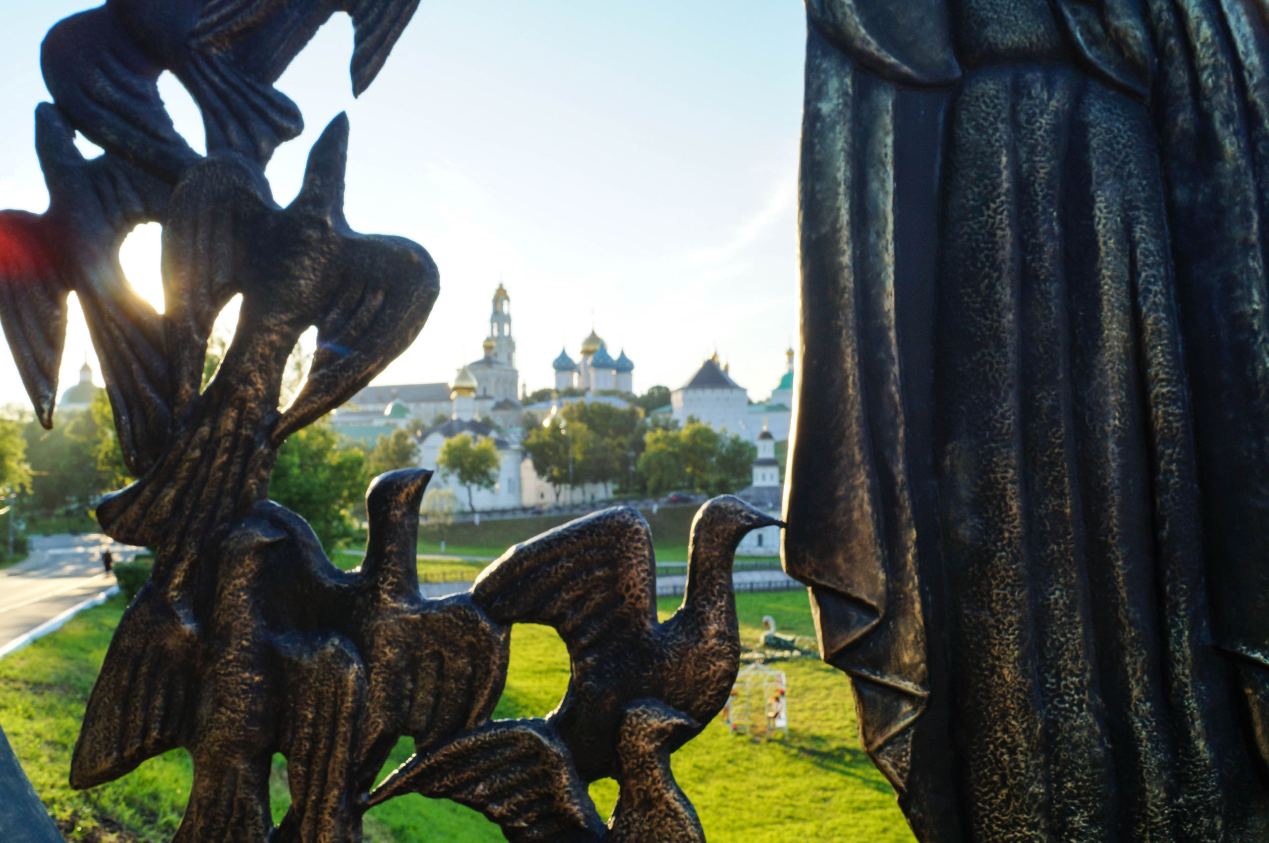 Перед Лаврой Сергий Радонежский соседствует с Ильичем. Сергий выглядит внушительнее.